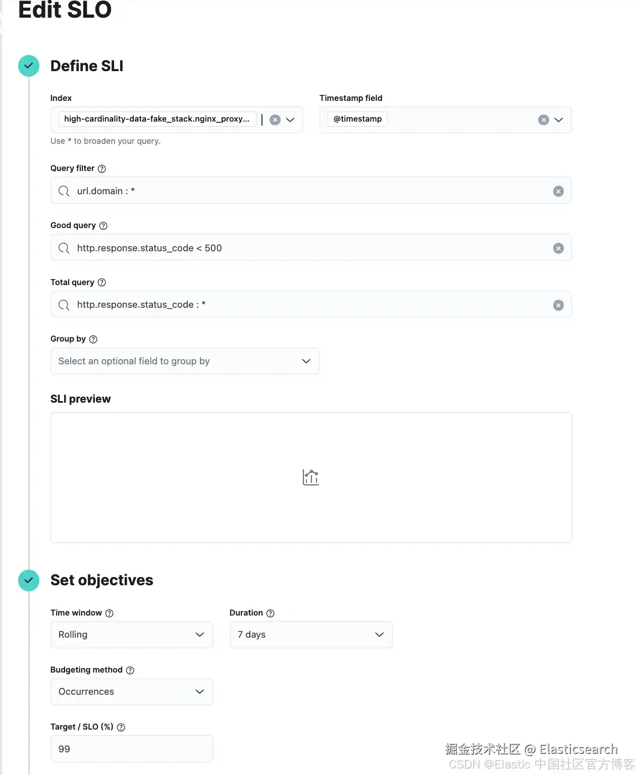 - SLO 可以基于日志。在 Elastic 中,你可以使用 KQL 查找和过滤特定日志和日志字段来监控和触发 SLOs。