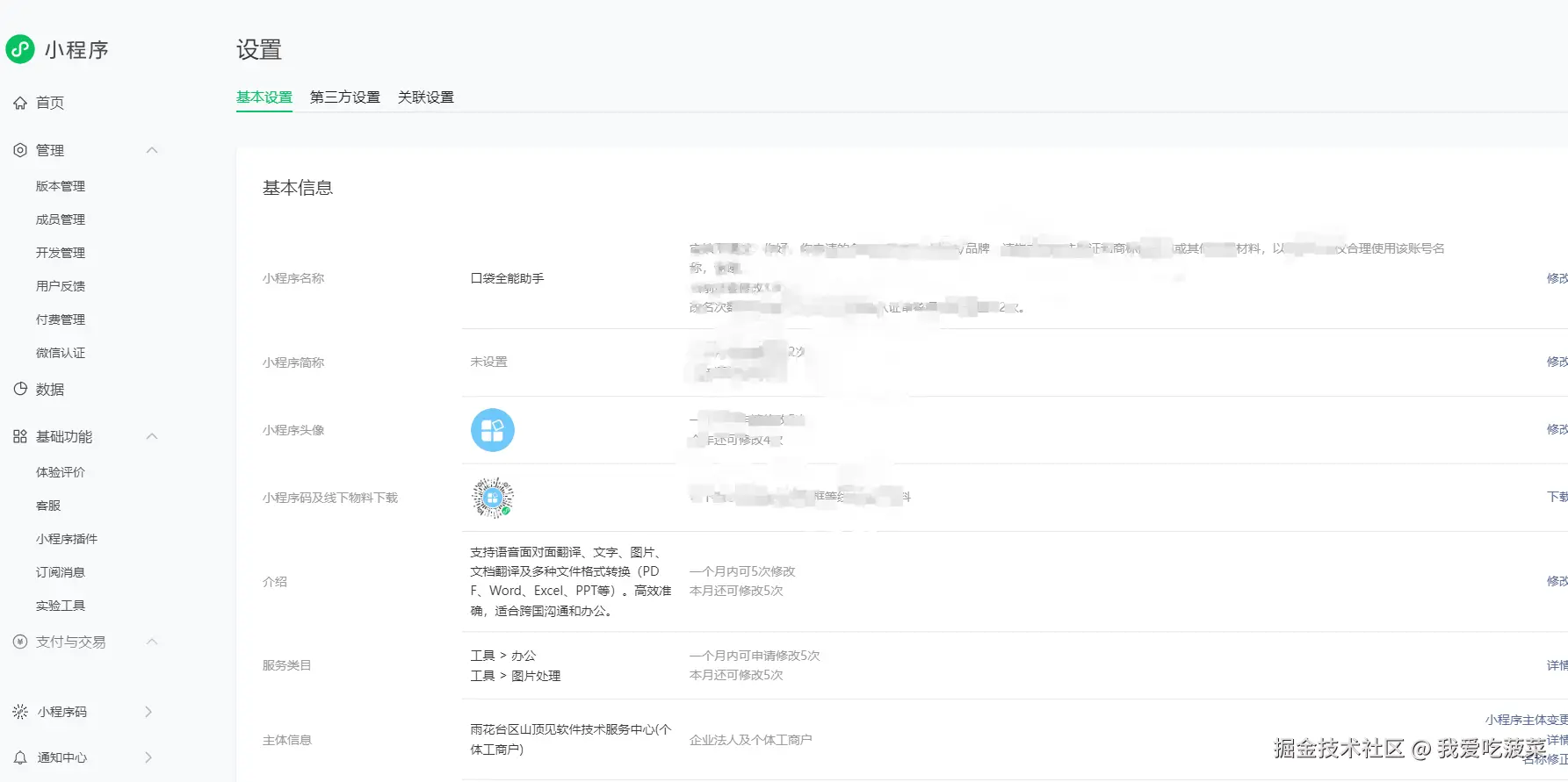 其中有一点需要注意,提前确认小程序的主体,个人、个体工商户和企业的不一样,个人的对接不了支付等,但是个人或者个体工商户的目前认证费用是30/年,企业的要300年(个体实在太难了),我果断用个体户注册了小程序,并完成了开发前的一切准备工作。