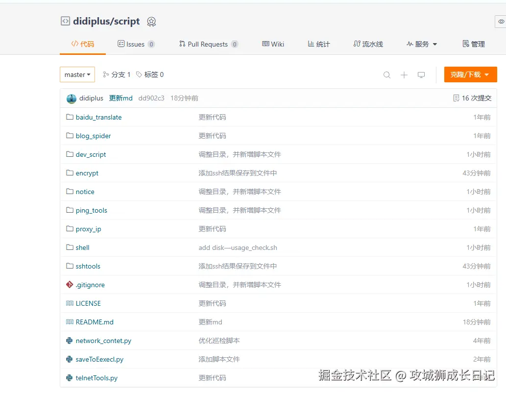 上述脚本已经上传上传到gitee,有需要的小伙伴可以自行获取。gitee上的仓库主要是分享一些工作中常用的脚本。小伙伴可以frok或者watch仓库,这样有更新可以及时关注到。