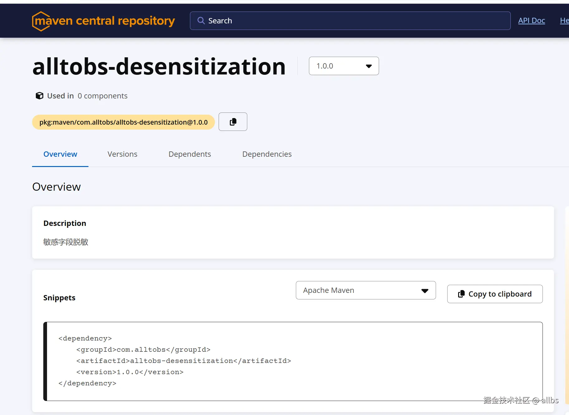 工具已经上传到了maven的中央仓库,国内的用户可能存在下载困难等问题,需要科学一下。使用国内的阿里等平台代理,以我以往经验同步过去起码要半个月把。