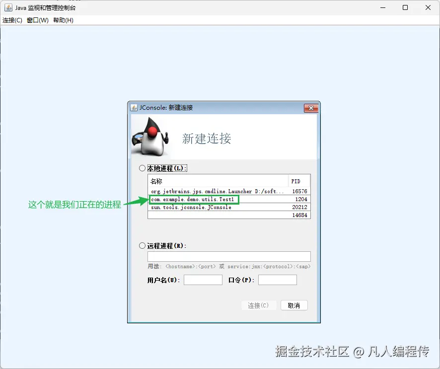 也可以使用jconsole连接远程的Java进程,但是一般不这么用,不做过多讲解。