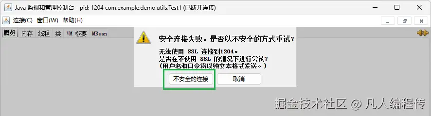 step2: 选择本地进程,如我这里选的是刚刚启动的Test1,然后选择“不安全的连接”。