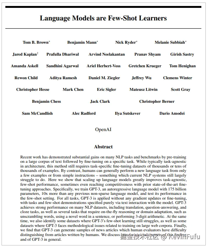 论文摘要(精简版):近期的工作强调预学习在 NLP 中的重要作用。但是这种方法仍然需要成千上万条数据去训练机器模型。与之相对应的是,人类只需要很少的样例就可以完成即使给大模型足量的数据都无法完成的简单的指令。在本篇文章中,研究者由浅入深地证明了 GPT-3 模型与传统模型不同的点 —— Few-Shot Learners,并且为未来 GPT-3 的边界界定打下基础。