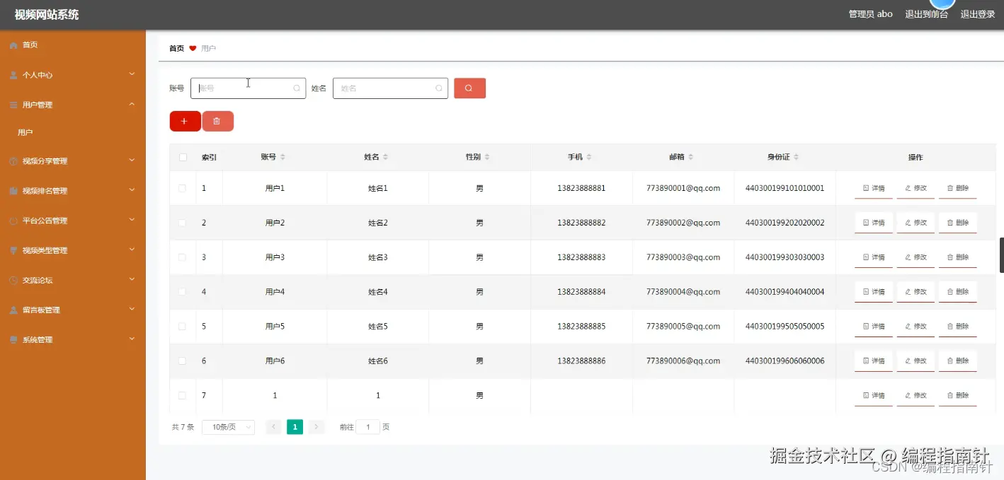 管理员管理用户信息,可以添加,修改,删除用户信息信息。下图就是用户信息管理页面。