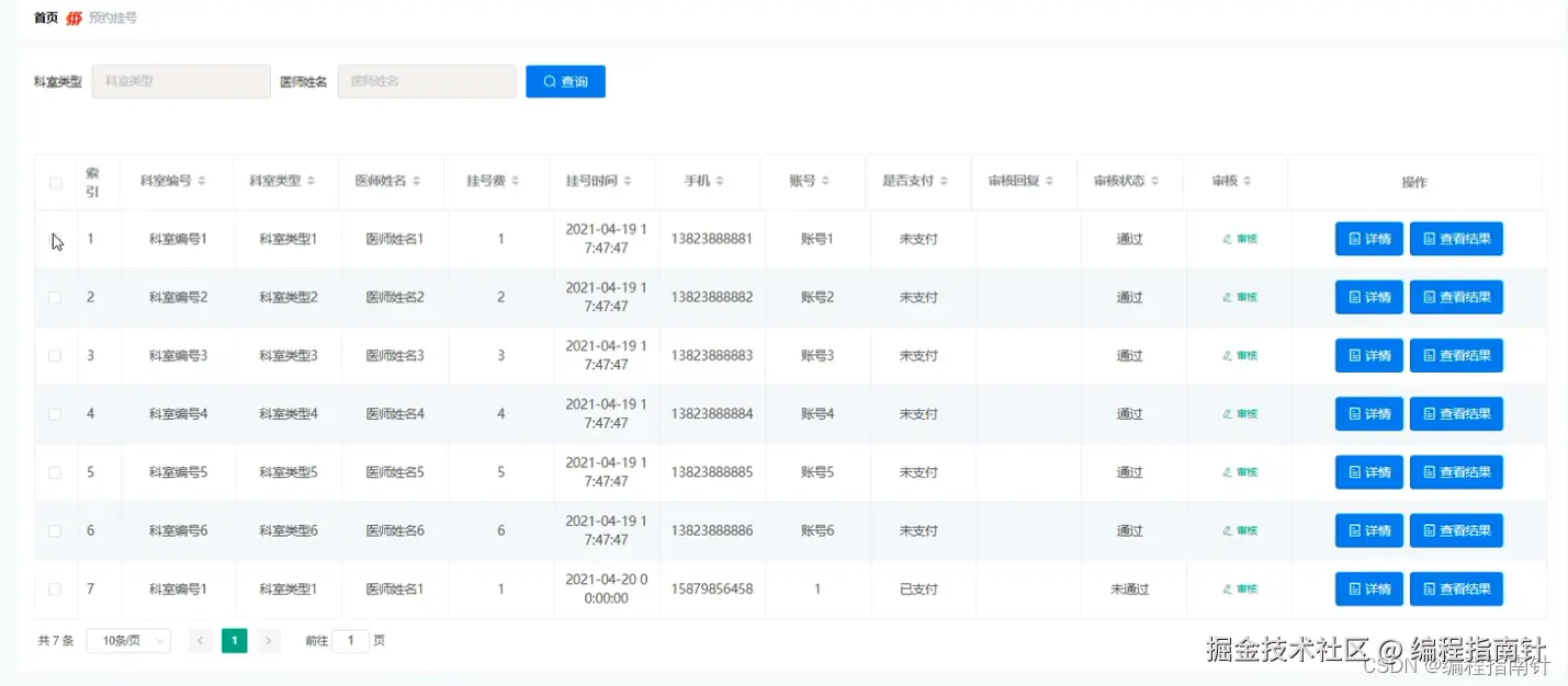 3.3.1预约挂号管理界面