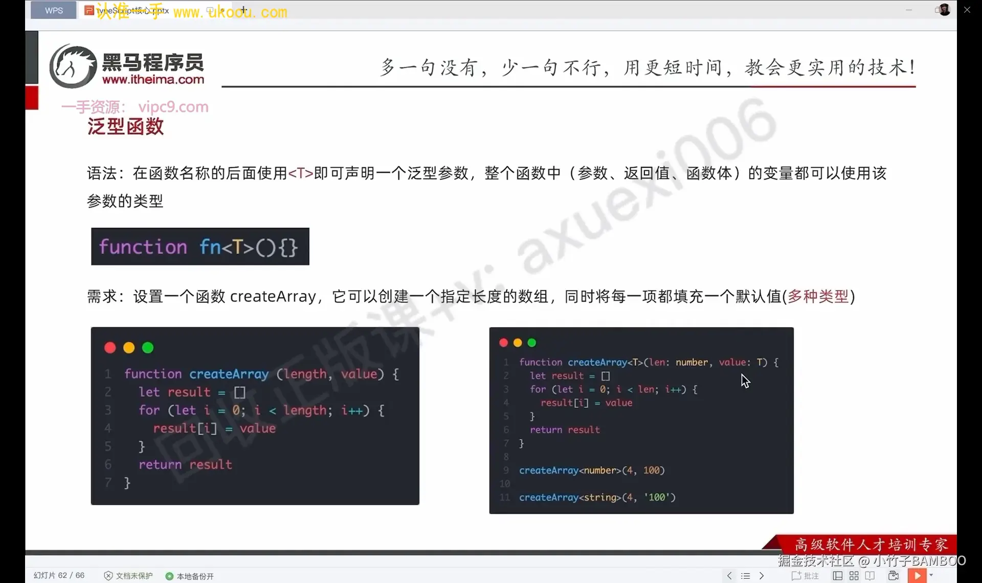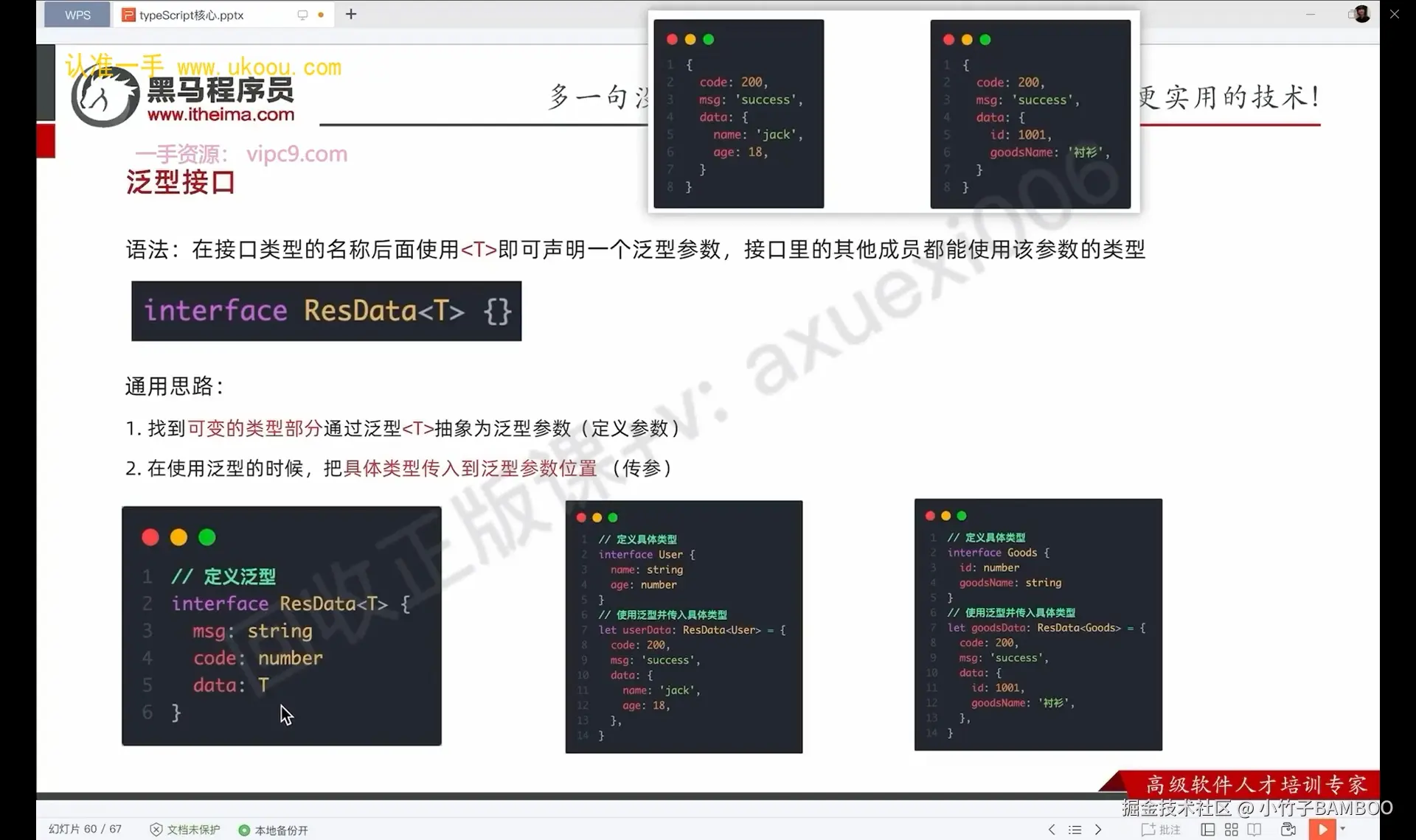 泛型:是指在定义接口、函数等类型的时候,不预先指定具体的类型,而在使用的时候再指定类型的一种特性,使用泛型可以复用类型并且让类型更加灵活
