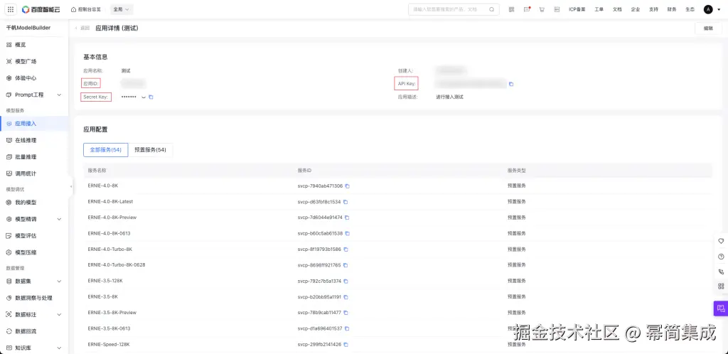 2.进入千帆ModelBuilder点击左侧的应用接入并且点击创建应用