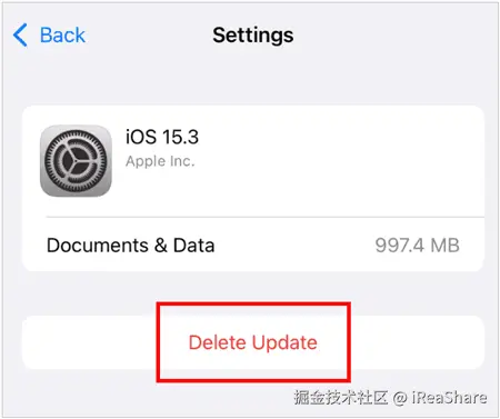 如果您的iPhone从Apple服务器下载的更新文件由于网络或其他未知因素而损坏,您需要删除该文件,然后重新下载更新包。