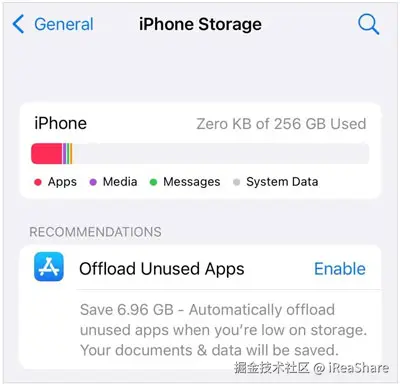如果您的iPhone存储空间不足,即使有网络,设备也会无法下载软件包。因此,请检查您的 iPhone 存储空间: