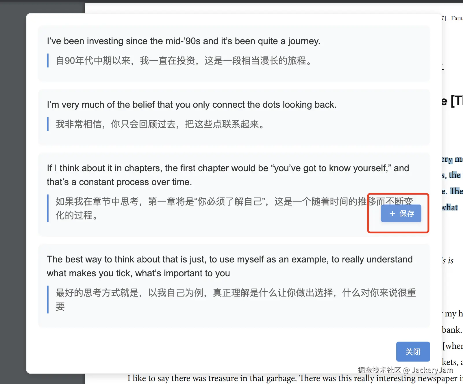 - 我画词翻译弹窗的时候,需要多加一个保存按钮,中英文以及时间都需要保存