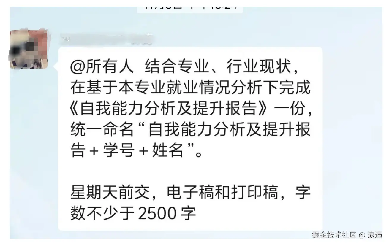 不出片刻,3000 字搞定,我 Ctrl C + Ctrl V,稍加修改后,直接发给学委,而后躺着刷 B 站!