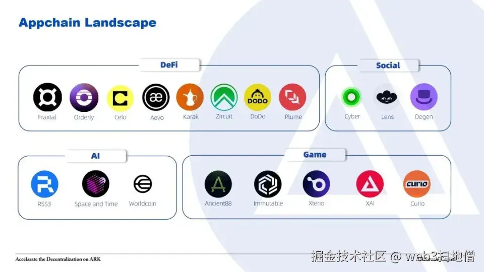随后,其他 Rollup 解决方案也纷纷推出了类似的概念,如 Arbitrum Orbits、Polygon CDK、StarkWare Appchain 和 zkSync Hyperchains 等。这样一来,对于dApps而言,应用链成为实现业务逻辑的新途径,原有 dApps的升级实现不再是难题,主要挑战转向了技术选型、业务设计和运营维护。