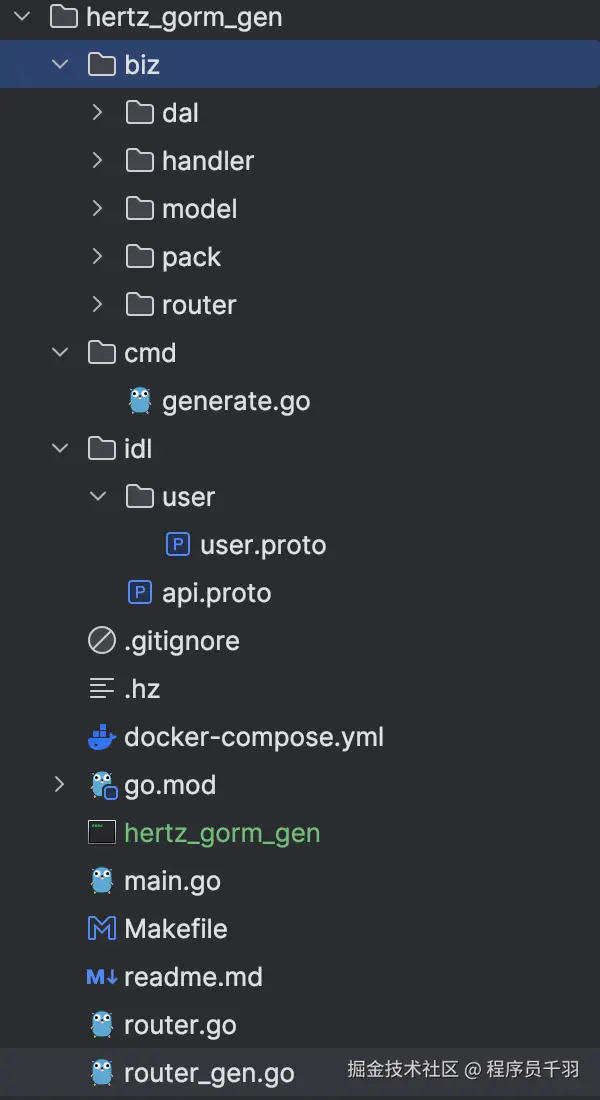 以下是 Hertz 项目的基本目录结构,展示了如何集成 Gorm-Gen: