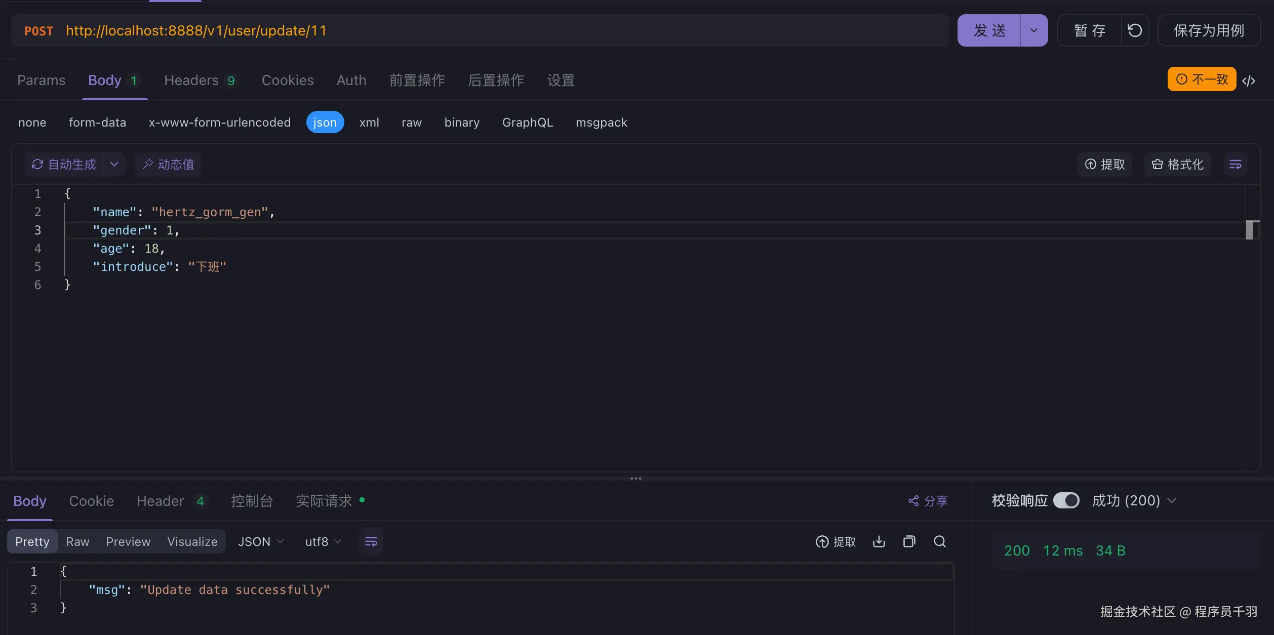 - UpdateUserResponse:更新用户,POST 请求路径为 /v1/user/update/:user_id。