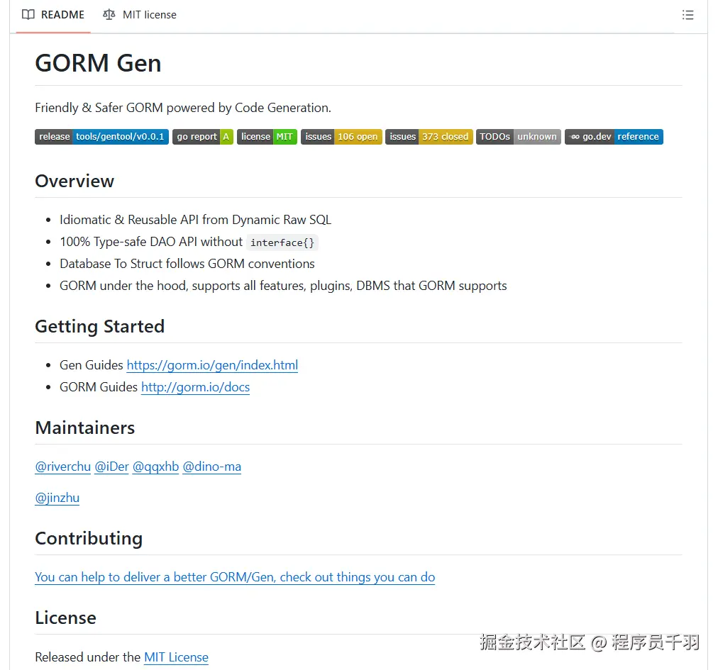 GEN 是一个基于 GORM 的安全 ORM 框架,其主要通过代码生成方式实现 GORM 代码封装。旨在安全上避免业务代码出现 SQL 注入,同时给研发带来最佳用户体验。