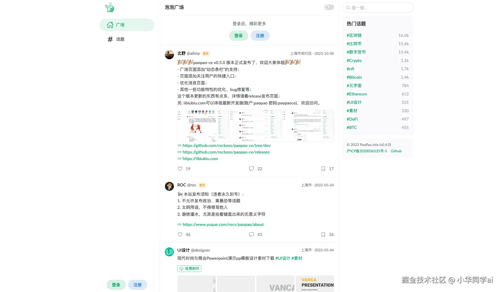 PaoPao 是一个清新文艺的微社区,类似于 微博、Twitter,但更注重艺术和创意的表达。它基于 Go、Gin、Zinc、Vue 和 TypeScript 等技术构建,具有良好的性能和可扩展性。本文将介绍 PaoPao 的功能、技术栈、快速开始指南和部署方式,帮助您快速搭建自己的微社区。