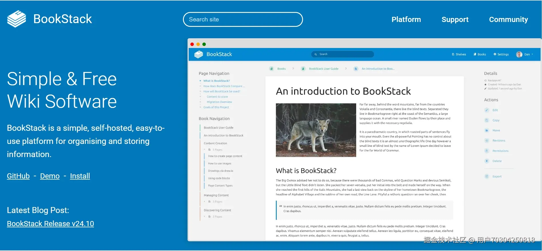 支持Markdown编辑、版本控制、细粒度权限管理。