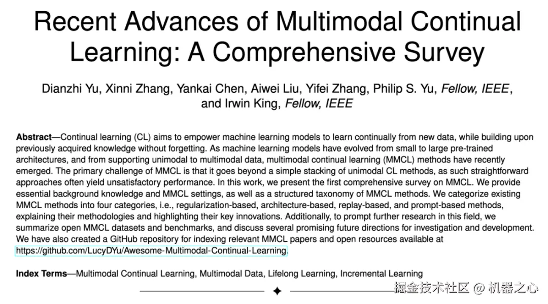 论文标题:Recent Advances of Multimodal Continual Learning: A Comprehensive Survey