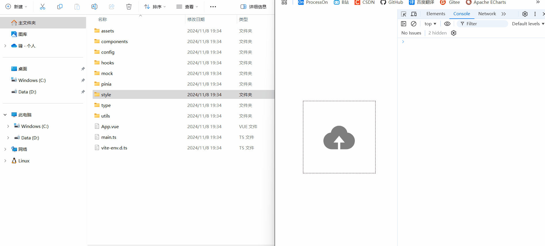 当你拖拽文件和拖拽文件夹时,是不同的数据类型哦,注意一下