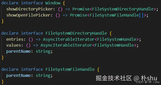 window.showDirectoryPicker() 会返回一个文件夹句柄,里面有几个关键的函数:getDirectoryHandle、getFileHandle、迭代器。