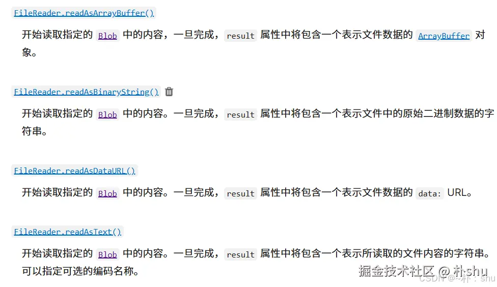 Tips:关于上诉 FileReader、Blob、File等常见数据类型的定义、转换不在本篇的讨论范围哈,网上也有很详细的说明,大家搜索一下就可以了,我推荐两篇文章,大家可以看看~