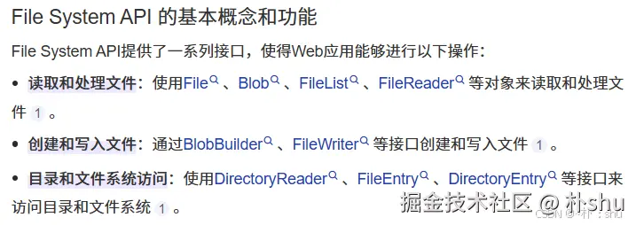 通过这些句柄,Web应用可以实现对本地文件系统的读取、写入、导航等操作。