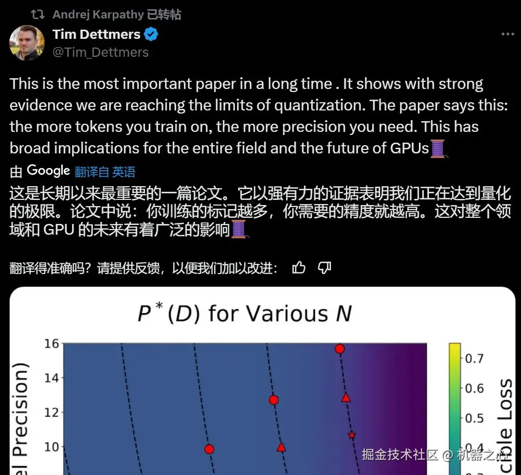 CMU 教授 Tim Dettmers 则直接说:它是很长一段时间以来最重要的一篇论文。OpenAI 创始成员、特斯拉前 AI 高级总监 Andrej Karpathy 也转发了他的帖子。