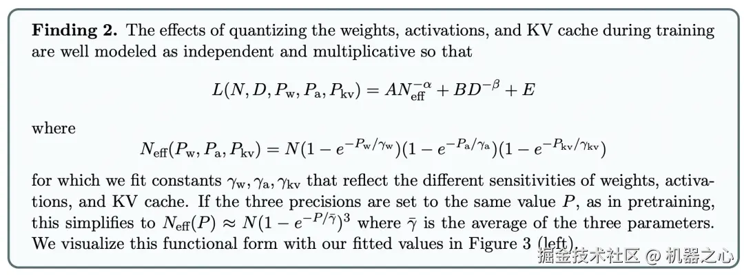 该工作统一了训练后量化和训练前量化的扩展定律,得出一个单一的函数形式,可以预测不同精度下训练和推理的性能下降。