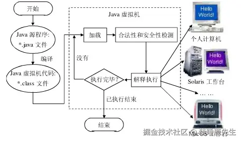 Java 语言具有跨平台特性,能够 “一次编译,到处运行”。这主要是因为 Java 虚拟机(JVM)的存在。一般的高级语言在不同平台上运行需要编译成不同的目标代码,而 Java 语言编译后生成字节码文件,在不同平台上由对应的 JVM 解释成具体平台上的机器指令执行。
