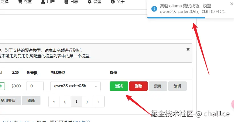 填好之后去外面点击测试,右上角出现测试成功的字样就说明部署成功了。