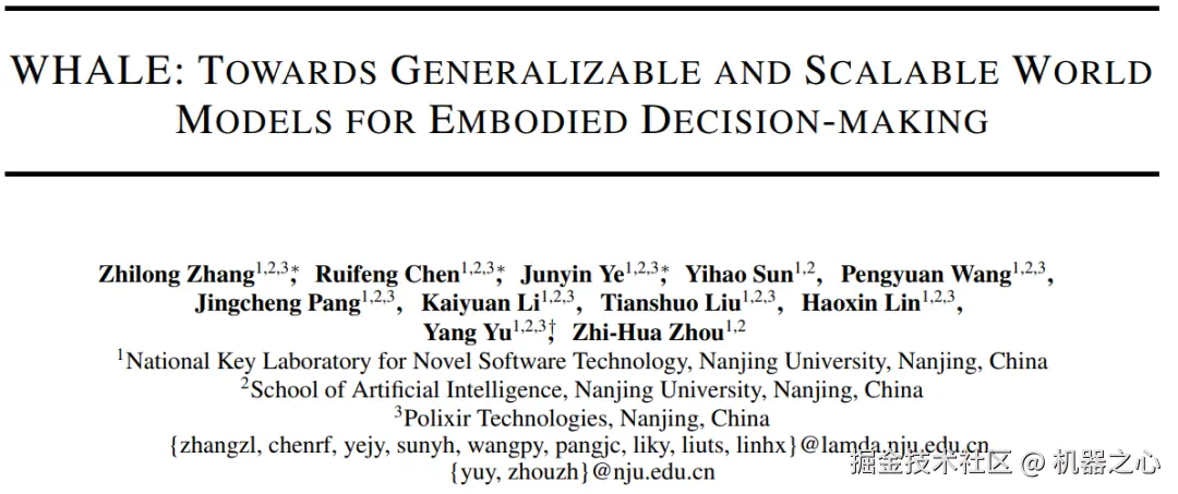 论文标题:WHALE: TOWARDS GENERALIZABLE AND SCALABLE WORLD MODELS FOR EMBODIED DECISION-MAKING