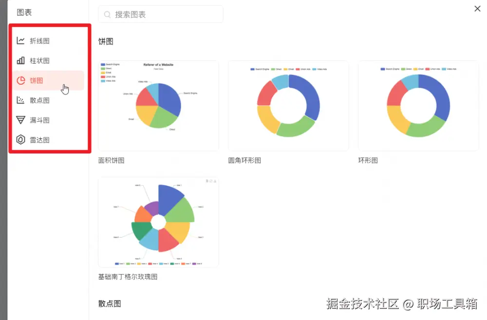 在制作PPT的过程中,当需要插入图表时,点击顶部工具栏的 “图表” 选项。此时会弹出一个图表选择窗口,里面展示了各种可用的图表类型,包括折线图、柱状图、饼图、散点图、漏斗图、雷达图等。你可以根据自己的数据特点和展示需求,仔细浏览这些图表类型,选择最适合自己数据的图表。