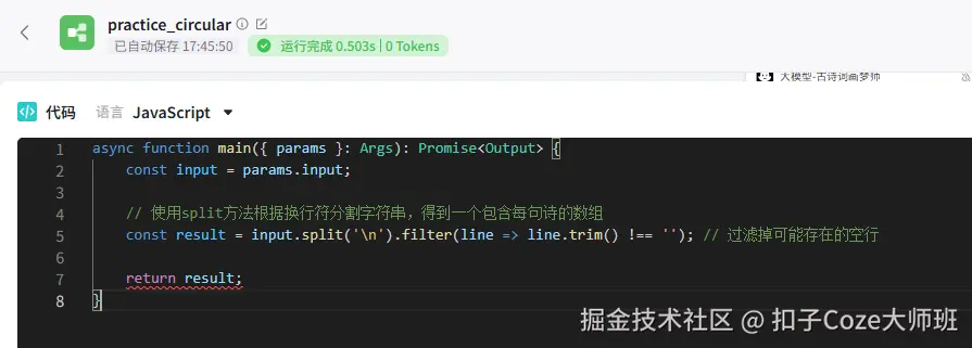 首先,添加一个代码,写一段切割文本的代码。不会写没关系,我们可以让AI帮写。