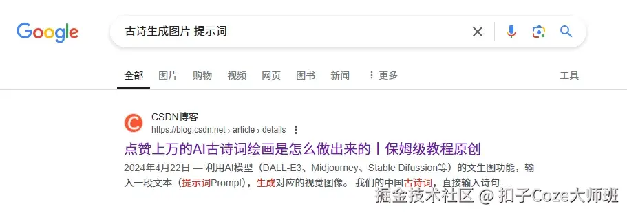 首先去google一下:古诗生成图片 提示词
