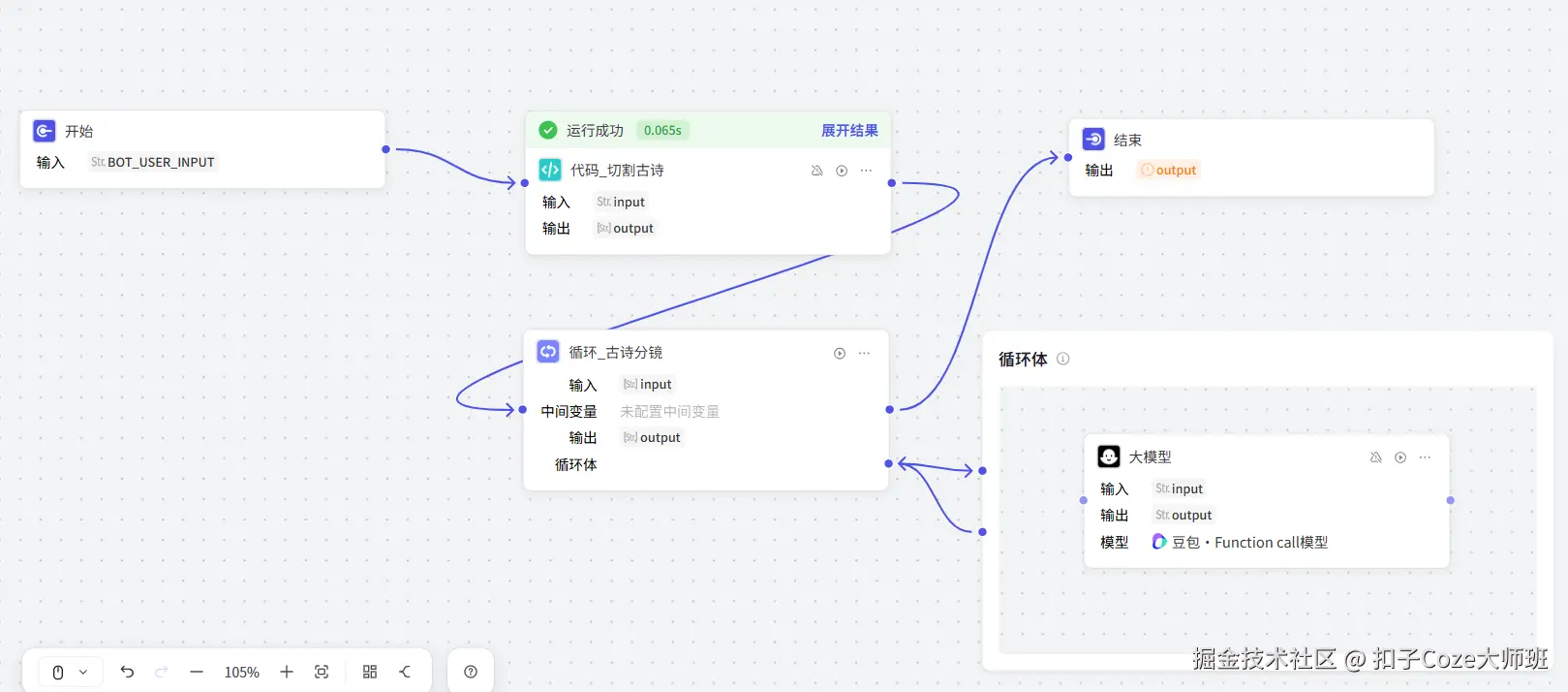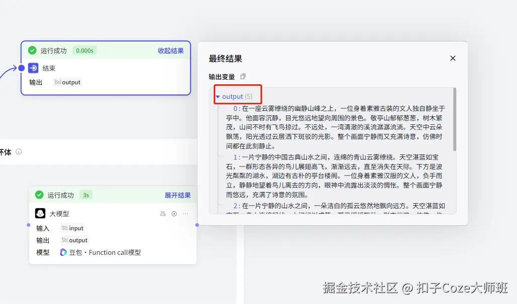 此时,我们将切割后的每一段发给循环,循环会依次执行大模型,最后汇总返回结果