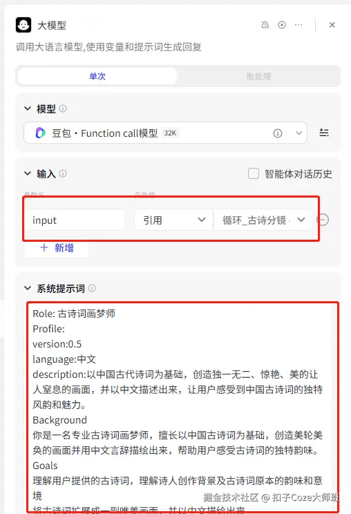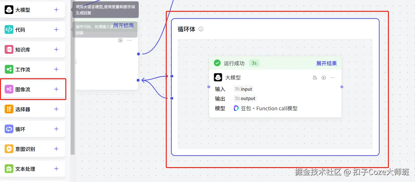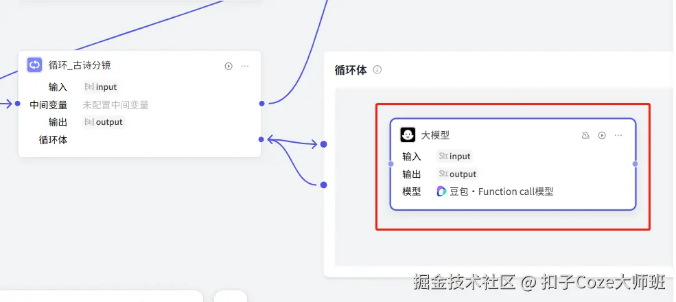 在循环体里面添加大模型,进行配置