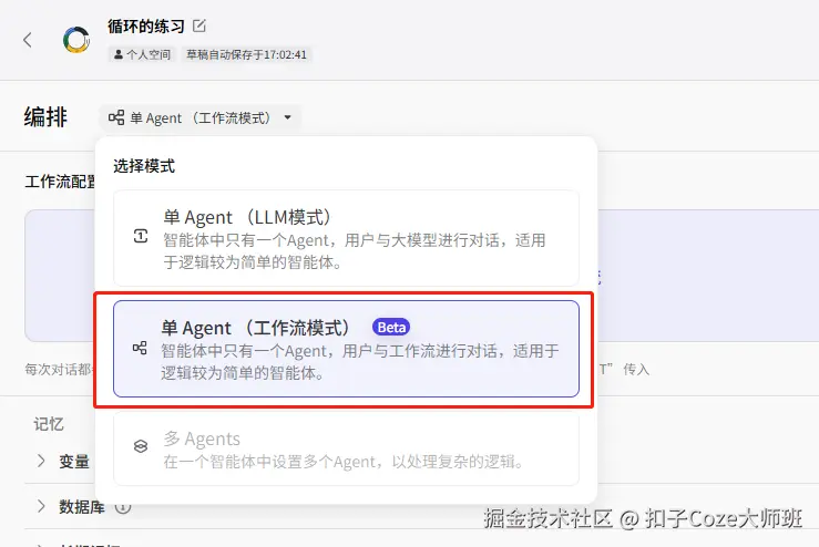 打开扣子,创建一个项目“循环的练习”