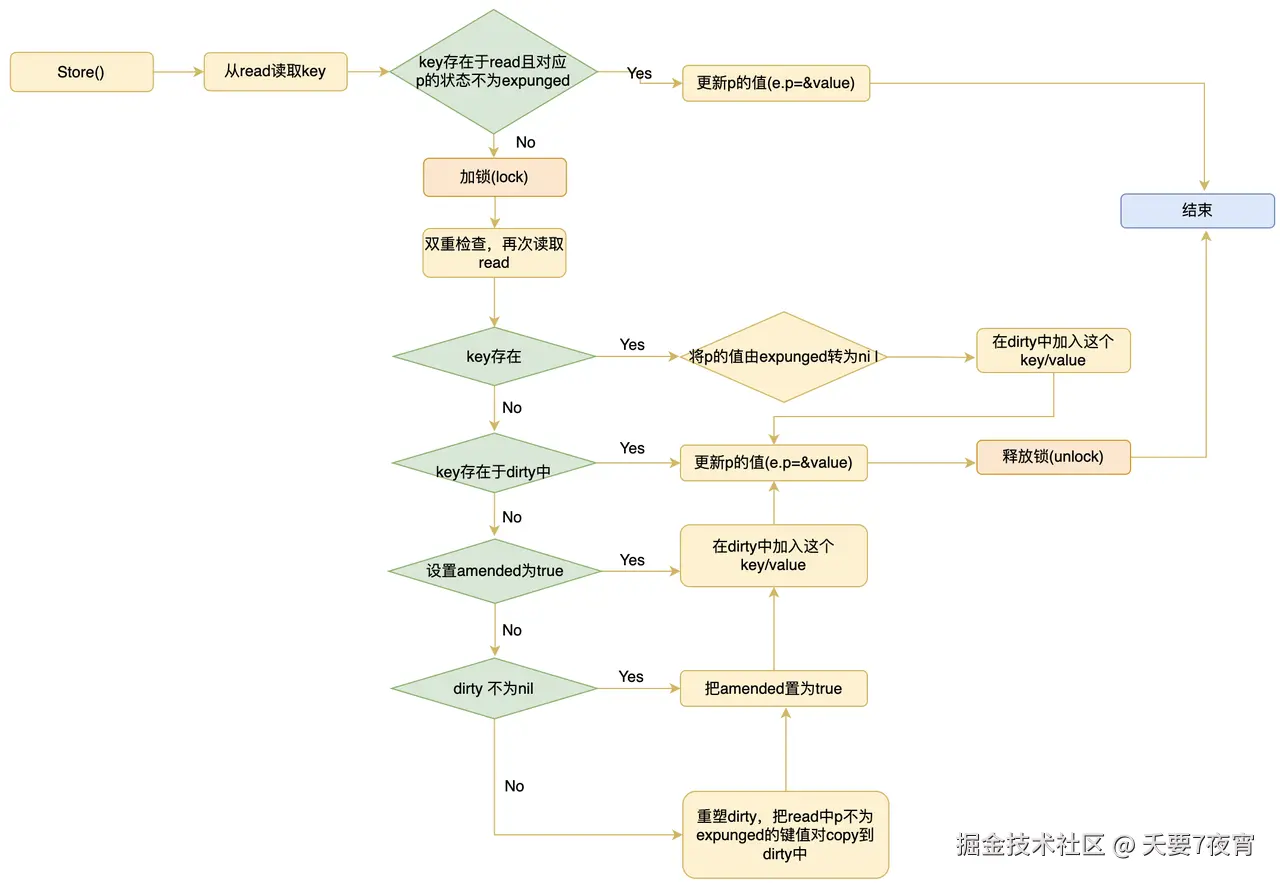 m.read.Store(readOnly{m: read.m, amended: true}) // 更改read的amended为true,因为接下来要在dirty中插入一个新的keu,这个keu存在与dirty,但不存在于read