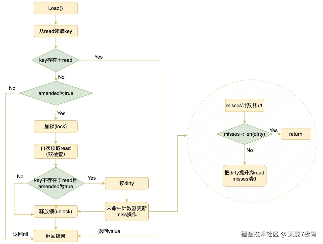 // 先判断dirty是否为空,因为有一种情况,当read的未命中次数几misses达到dirty长度的时候,会拷贝整个dirty到read,即重塑过程