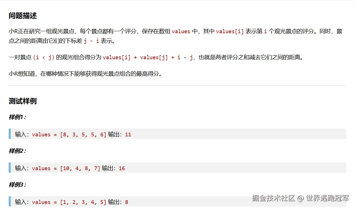 max_score = max(values[i] + values[j] + i - j, max_score)