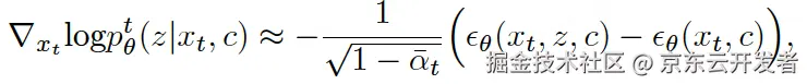KL损失约束的目的是为了保持图像不变,而F_AC是希望图像朝着可用率更高的方向改变,这样的对抗的目标难以产生双赢的结局。为了解决该问题,我们将重点从保持图像本身不变,迁移至输入文本条件的指导不变。由于在文生图模型中,文本内容和图像内容是高度相关的,因此我们提出了一种条件一致约束来保证文本条件不变。根据classifier-free的训练方法,可以推导出文本条件对图像生成过程的影响方向为: