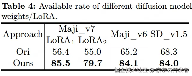 为了评估我们方法的灵活性,我们考察了微调后的ControlNet在与各种LoRA和扩散模型权重整合时的通用能力。如表4所示,经过微调的ControlNet显著提高了不同LoRA和扩散模型权重的可用率。