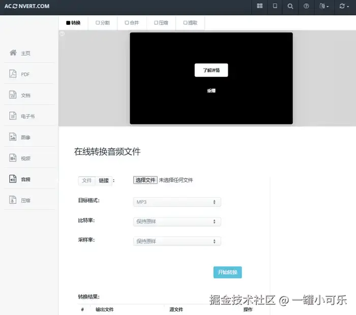 方法六:用Aconvert将视频转换mp3