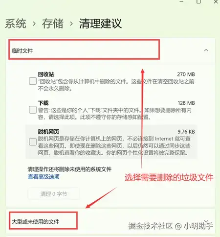 打开电脑“设置”,在左边点击“系统”,然后点击“存储”,在存储管理中点击“清理建议”,进去后选择经过系统筛选后的垃圾文件进行删除。