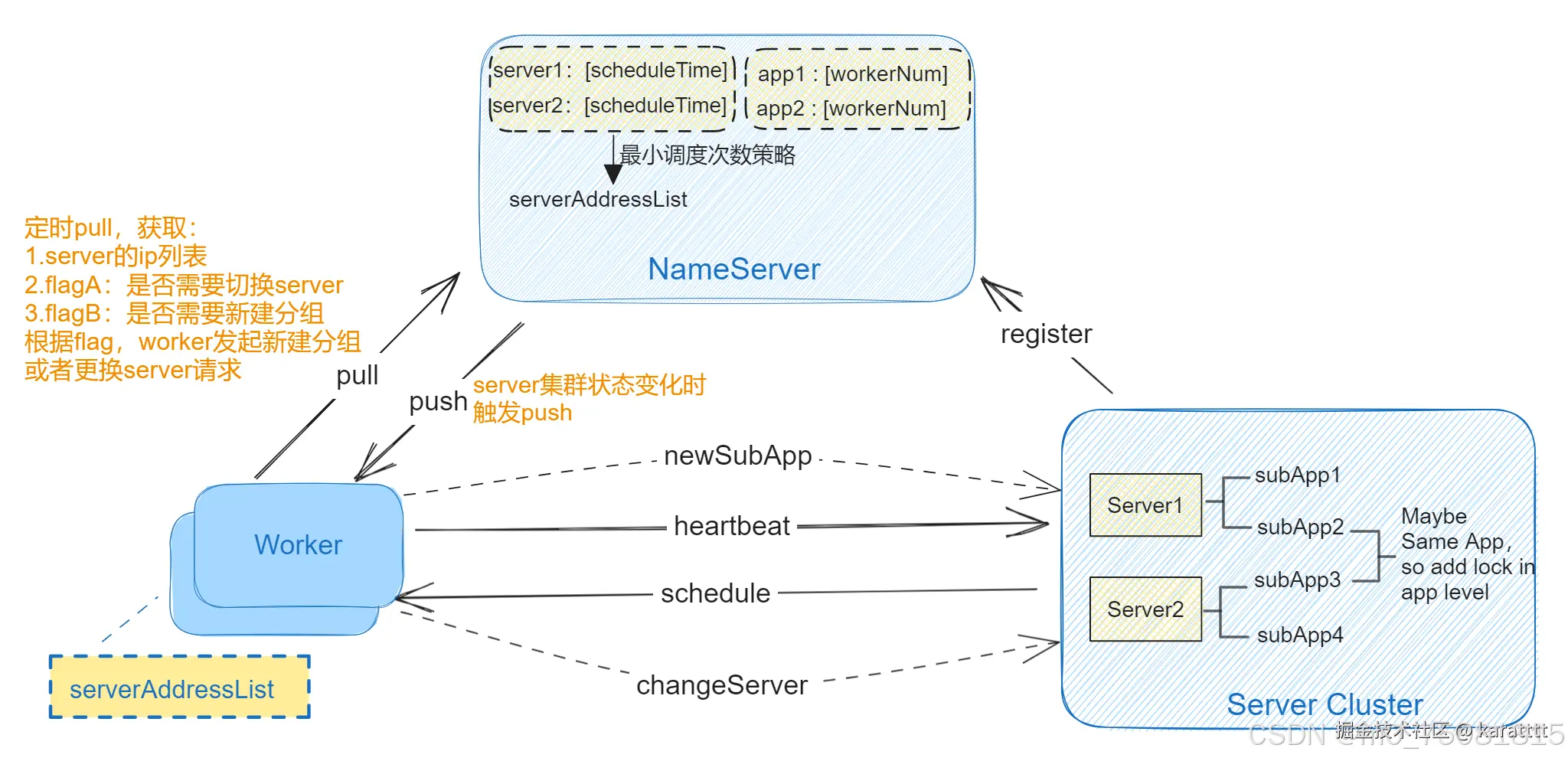 附上个人总结的对于worker和server之间服务发现以及调度的流程图