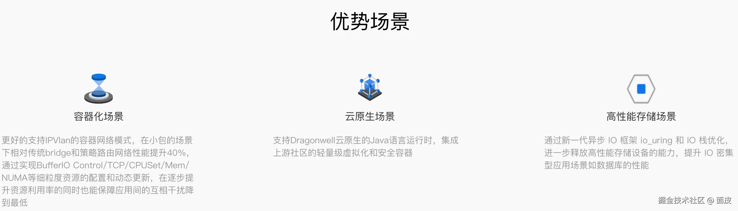 购买过阿里云服务器的用户应该知道,服务器可选的操作系统就有Alibaba Cloud Linux 3,它就是Anolis OS的商业版。Alibaba Cloud Linux 3是阿里云推出的基于Anolis OS为阿里云基础设施定制优化的Linux发行版,在继承Anolis OS兼容RHEL/CentOS 8 生态的同时,搭载最新的Linux kernel 5.10 LTS并搭配GCC 10.2/Glibc 2.32,为云上应用程序提供Linux社区最新的增强功能。通过对内核、工具链、上层软件包等进行了全方位的优化,使Nginx、Redis、Mysql等主流E2E应用在各方面性能相比CentOS 8提升10%~40%;与阿里云ACK、ECS等云产品做垂直优化,在保障稳定性的同时得到最好的性能,为阿里云用户提供最好的阿里云体验。在给用户提供更新的操作系统功能的同时,保持阿里云操作系统一贯的高性能、安全、稳定的风格,并免费提供长达10年的超长生命周期支持服务,给用户提供阿里云上的最佳操作系统体验,同时也会将产品沉淀的能力回馈到OpenAnolis龙蜥社区。