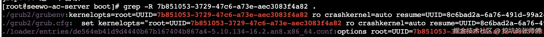 这里暂时不知道为什么没有生效,去 /boot 目录搜索相关的关键字,看下是不是有其它的配置文件