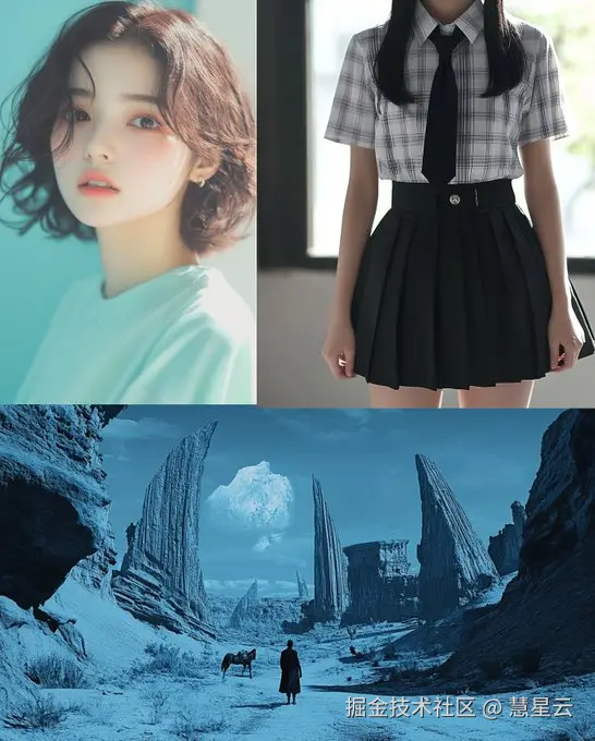 目前 Vido 以便您可以上传最多 3 个参考图像,如上图所示,在上传了一张人像、服装与一个场景后,输入“用这个头 / 用这件衣服 / 在这个地方 + 提示”的命令后,就可以生成我们想要的效果了。