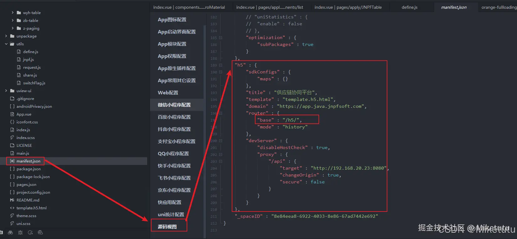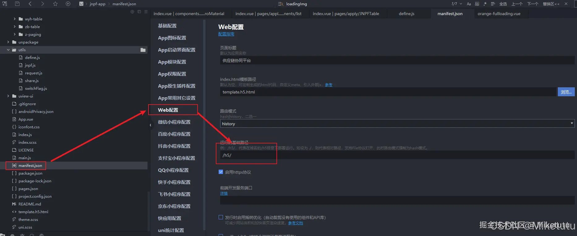 其中H5端的项目就是本次我需要部署的项目。在其他网上资料中可能会让你添加这样的代码进行区分PC和H5端。