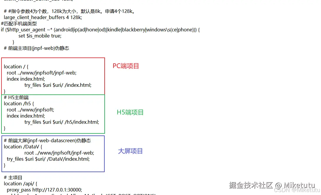 在项目中会碰见需要在nginx代理多个项目,如果在加上uniapp开发的H5端的项目,你还要在nginx中区分PC端和手机H5端,这就会让人很头大!网上大部分的资料都是采用在nginx的conf配置文件中添加区分pc和手机端的变量例如:set &is_mobile。但是这种方法只能是治标不治本。